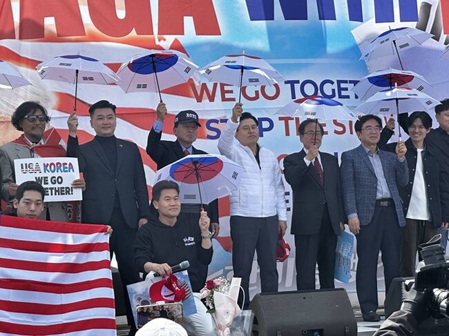 전한길, ‘한미동맹과 자유민주주의 수호대회’ 개최“오늘의 하얀 우산이 대한민국을 위기에서 구할 것”