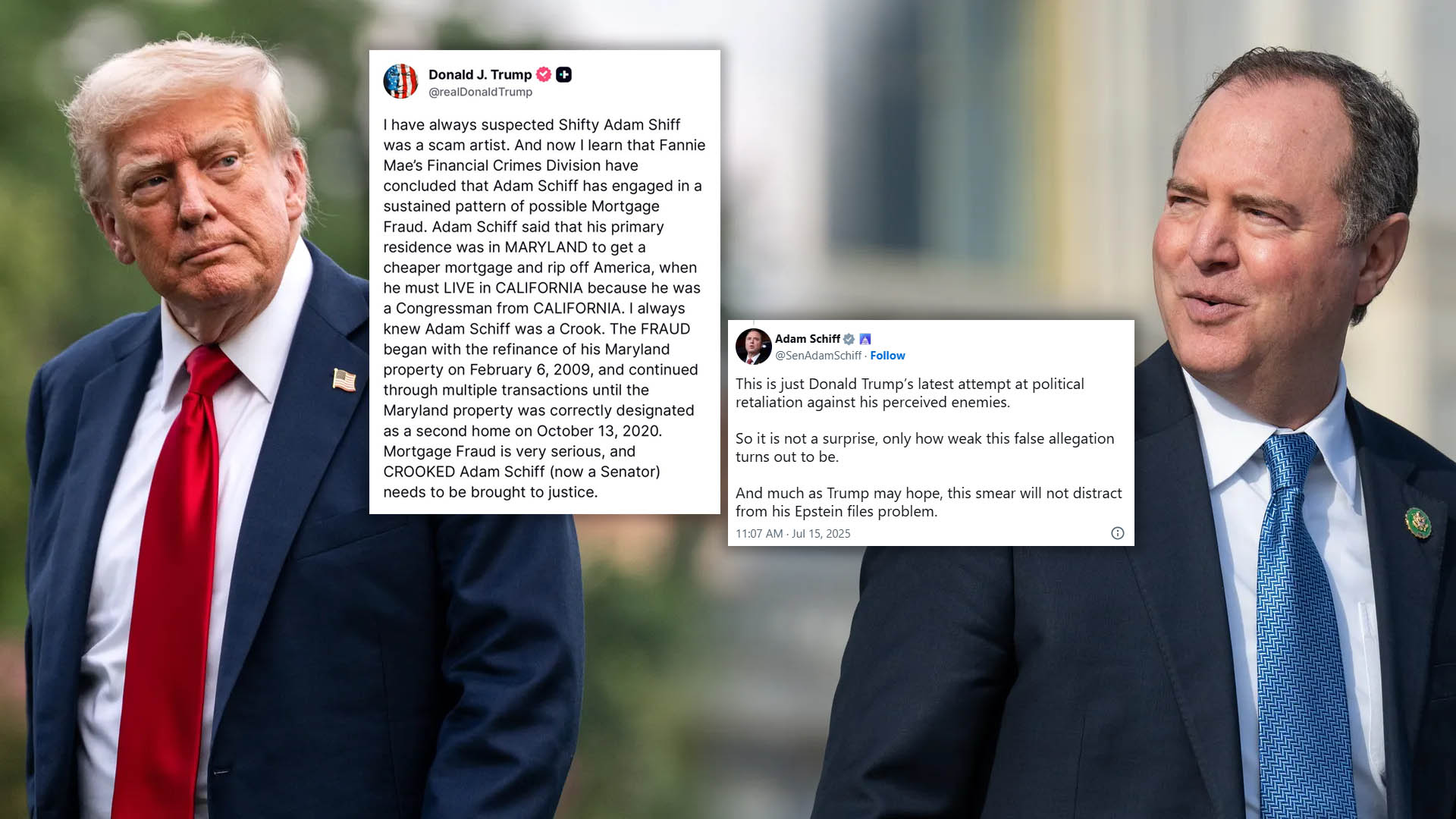 패니메이 금융범죄부가 애덤 쉬프(Adam Schiff,민주·캘리포니아) 상원의원을 상대로 지속적인 모기지 사기 혐의를 제기한다는 결론을 내린 후, 도널드 트럼프 대통령은 15일(화) 그에게 "정의"를 요구하고 나섰다.