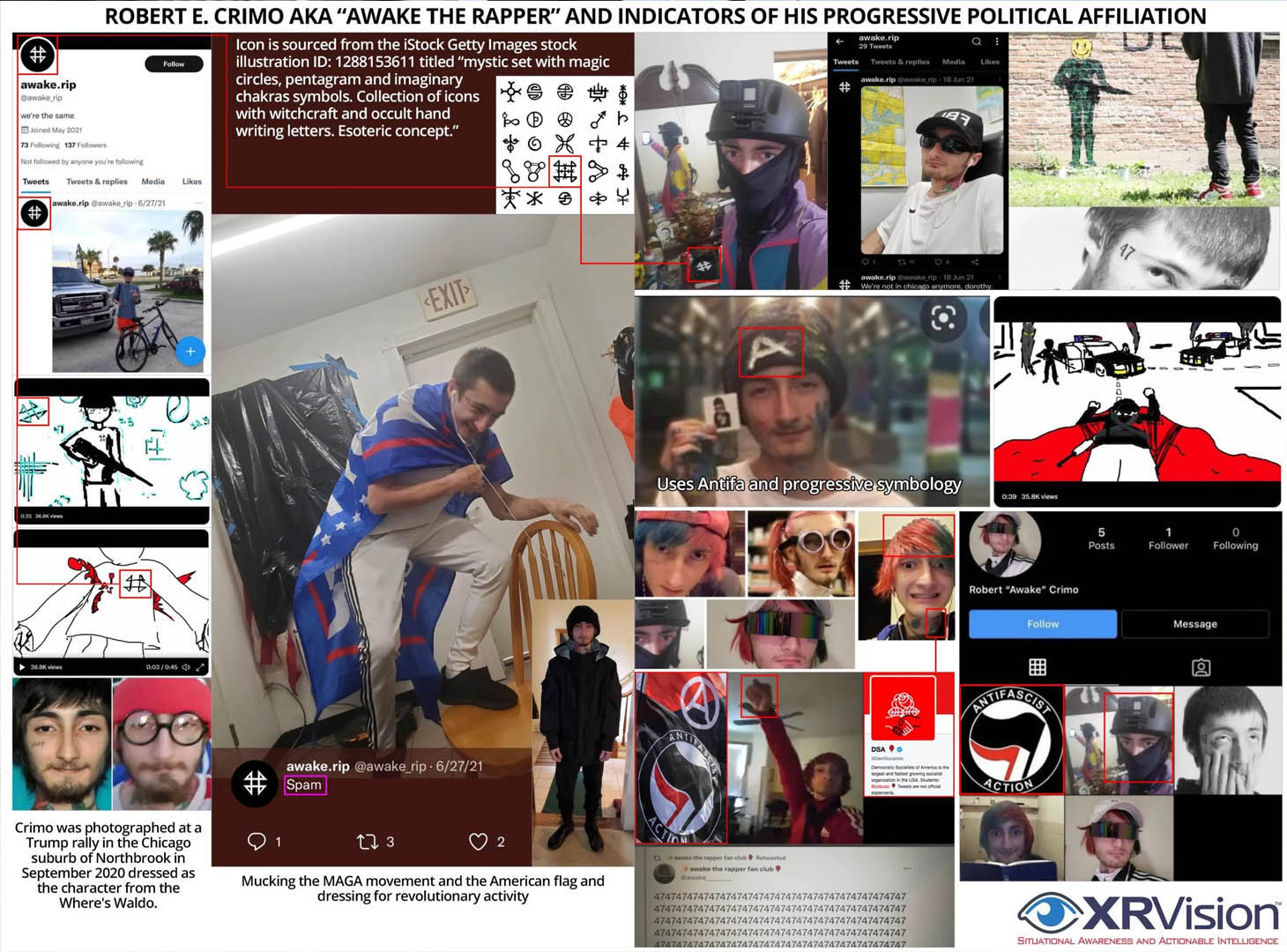 크리모는 또한 안티파와도 연계돼있는데, 소셜미디어에 있는 사진들 중 하나는 그가 어두운 안티파 의상을 입고 있는 모습을 담았다.