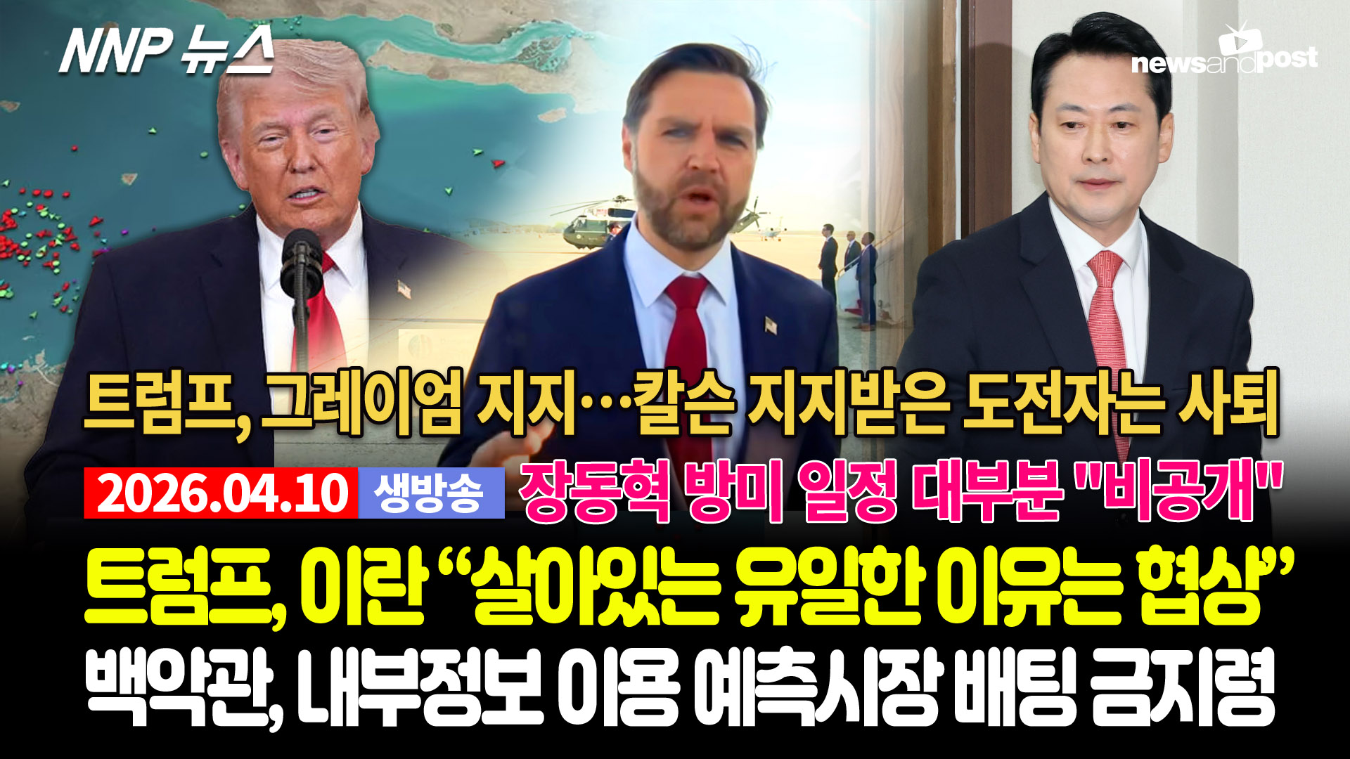 1 트럼프 “화요일 밤 8시” 최후 통첩 시한 선언 도널드 트럼프 대통령은 5일(일) 트루스소셜에서 이란에 대한 최후 통첩 시간으로 미 동부표준시로 화요일 오후 8시라고 선언했다.트럼프 대통령이 이란을 석기시대로 되돌려놓겠다고 위협하면서 시간을 명시하기는 이번이 처음... 2 IRI, 장동혁 대표 방문 관련 성명 발표 (종합) 장동혁 국민의힘 당대표 일행이 14일부터 16일까지 워싱턴DC를 방문하는 것과 관련해, 당초 초청 주체로 알려져 있는 IRI(국제공화연구소)가 입장문을 내놨다.IRI가 뉴스앤포스트에 보내온 성명에 따르면, IRI는 ... 3 트럼프 “이란의 문명 전체가 오늘 밤 멸망할 것” 도널드 트럼프 대통령은 7일(화) 오후 8시로 지정한 시한까지 이란이 미국의 제안을 수용하지 않으면 "문명 전체가 멸망할 것"이라고 재차 확인했다.그는 화요일 오전 트루스소셜에 "오늘 밤, 한 문명 전체가 영원히 되... 4 트럼프, 이란과 “2주 휴전”…호르무즈 해협 개방 도널드 트럼프 대통령이 파키스탄의 중재를 받아들여 호르무즈 해협을 개방하는 조건으로 이란에 대한 최후 공습을 2주간 중단하겠다고 밝혔다. 이란도 이에 동의했다.트럼프 대통령은 7일 오후 트루스소셜에 "파키스탄의 계바... 5 백악관: “호르무즈 해협 폐쇄 보도, 사실 아니다” 백악관은 이스라엘이 레바논 내 이란의 대리 테러조직을 공격했다는 이유로 이란이 호르무즈 해협을 폐쇄했다는 주장을 강력히 비판했다.이란은 수요일 레바논의 헤즈볼라 테러 조직에 대한 이스라엘의 공격에 대한 보복으로 호르... 6 트럼프 "호르무즈 해협 기뢰 제거 작업 중" 도널드 트럼프 대통령은 11일(토) 미국과 이란이 휴전협상을 시작한 가운데, 호르무즈 해협에서 기뢰를 제거하는 작업을 진행하고 있다고 밝혔다.트럼프 대통령은 트루스소셜에 올린 게시글에서 언론의 잘못된 보도행태를 비판... 7 트럼프 탄핵 원하는 국민이 52%?…여론몰이 논란 시민단체 '국민을 위한 자유언론'(Free Speech For People)은 6일(월) 보도자료를 통해 새로운 전국 여론조사 결과 "전국적으로 2026년 중간선거에 투표할 가능성이 높은 유권자 대다수가 도널드 트럼... 8 트럼프: 이란에서 미 공군 조종사 '기적적인' 작전으로 구조 미국은 부활절인 5일(일) 이란 영공에서 격추된 전투기를 탈출한 이후 적진에 고립됐던 미군 조종사를 구출했다고 밝혔다.중부사령부(CENTCOM)는 F-15E 조종사들을 성공적으로 구출한 후에 이란에 대한 공습을 계속... ![]() |