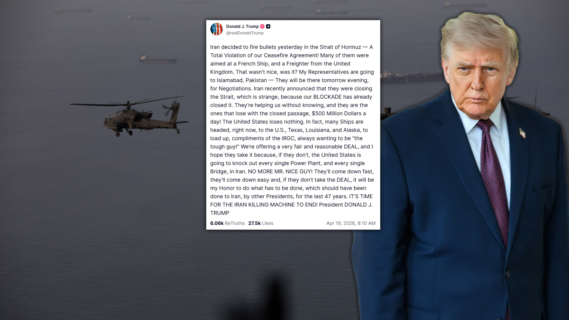 트럼프 “중국, 이란에 무기 보내지 않기로 합의”중부사령부, 이란 봉쇄 지역내 경고 방송 공개