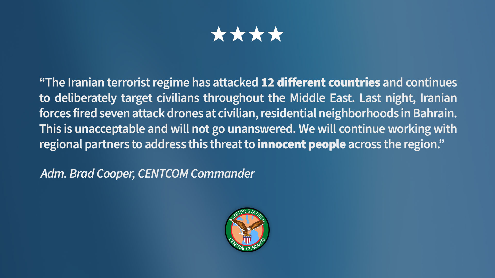 중부사령부, B-52 폭격기 출동 시사중부사령부: 이란, 바레인 인근 지역에 드론 공격 감행